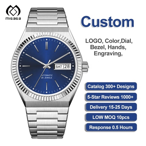 मिगागा पुरुषों के शीर्ष गुणवत्ता वाले कारखाने 904l स्टेनलेस स्टील पूरी तरह से स्वचालित जलरोधी चमकदार गति डाइवर पुरुषों
