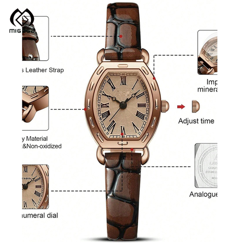 Ladies Roman Numeral Scales Analog Waterproof Women's Wrist Leather Quartz Watch for Women
